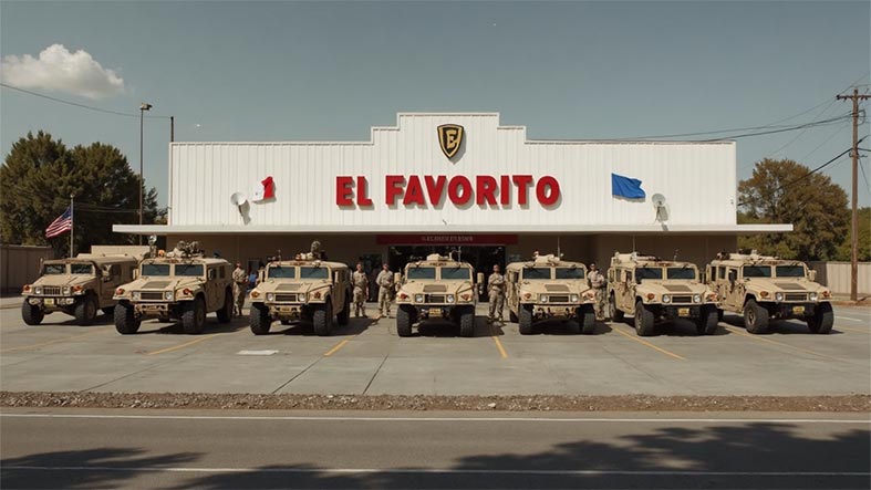 Esperanza residents awoke this morning to find a full pocket battalion of the Texas National Guard – including nearly 30 Humvees, ARADS, and Light Assault Vehicles – deployed in tactical formation in the parking lot of beloved local supermarket El Favorito. Khaki-clad soldiers had established a loose perimeter along the national road, and area residents with nothing better to do counted nearly 60 soldiers going in and out of the market. These same observers also confirmed to Nosara Lately that the entire battalion respected El Favorito’s very stupid and pointless rule about leaving through the other door.
